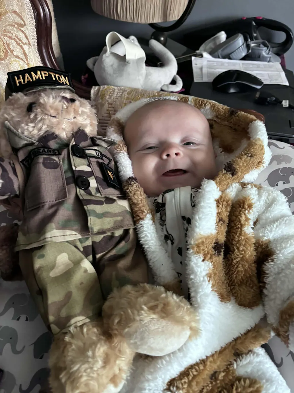 I had made one for my husband while I was overseas, and the day after delivery he passed away, I buried his bear with him so he always has me with him. He loved it for that whole time he was still here and thank you for bringing that joy to him. He cried when he opened the package and he took him everywhere that day and I’m just at a loss of words for it, my husband may have been 19 almost 20 but it didn’t change how much he loved that bear. So thank you all so much.