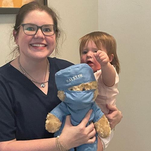 Our largest and cuddliest bears, these healthcare heroes are 16" tall.